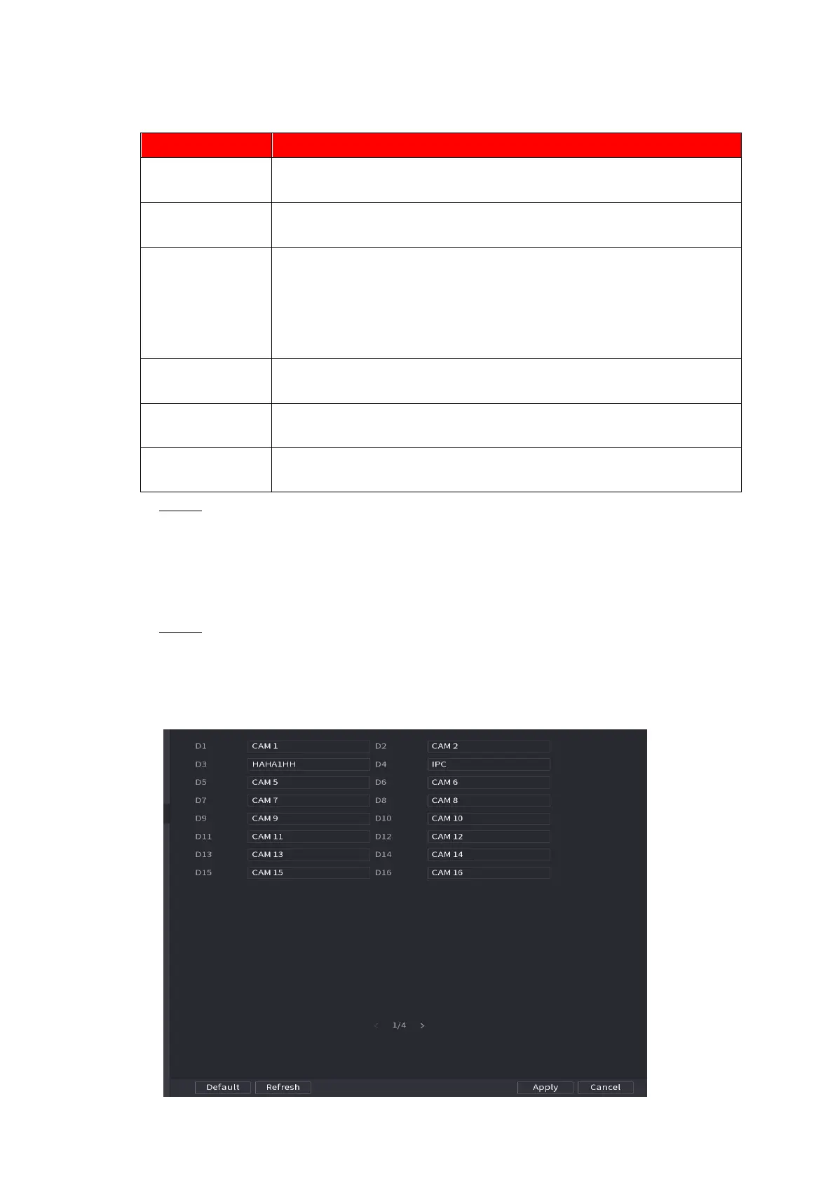 Step 1 Select Main Menu > CAMERA >CAM NAME.