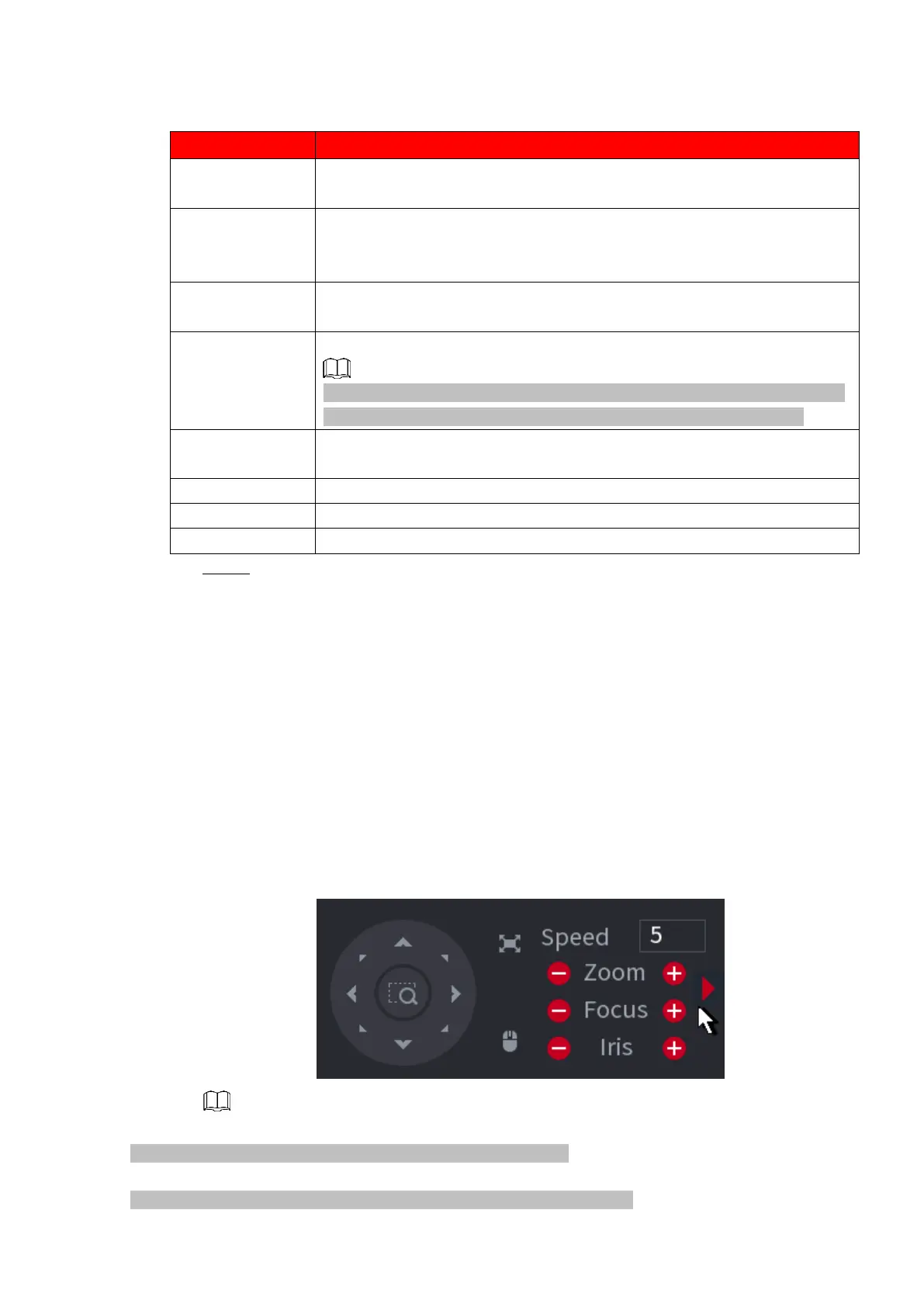 ⚫ PTZ control panel performs the operations such as directing camera in eight directions,