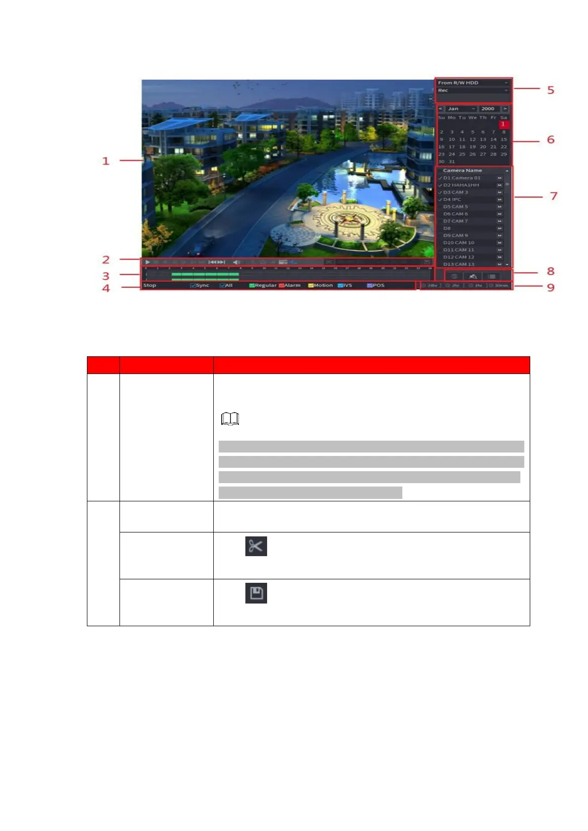 Display the searched recorded video or picture. It supports playing