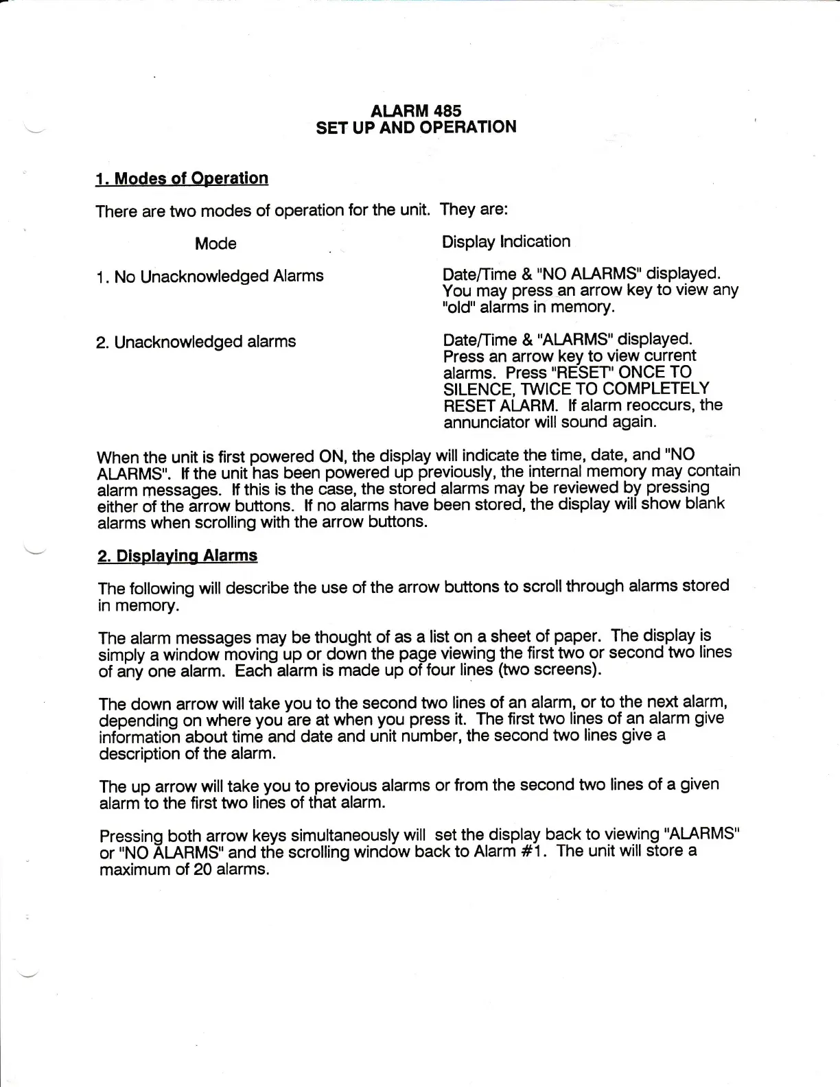 alarm messages.