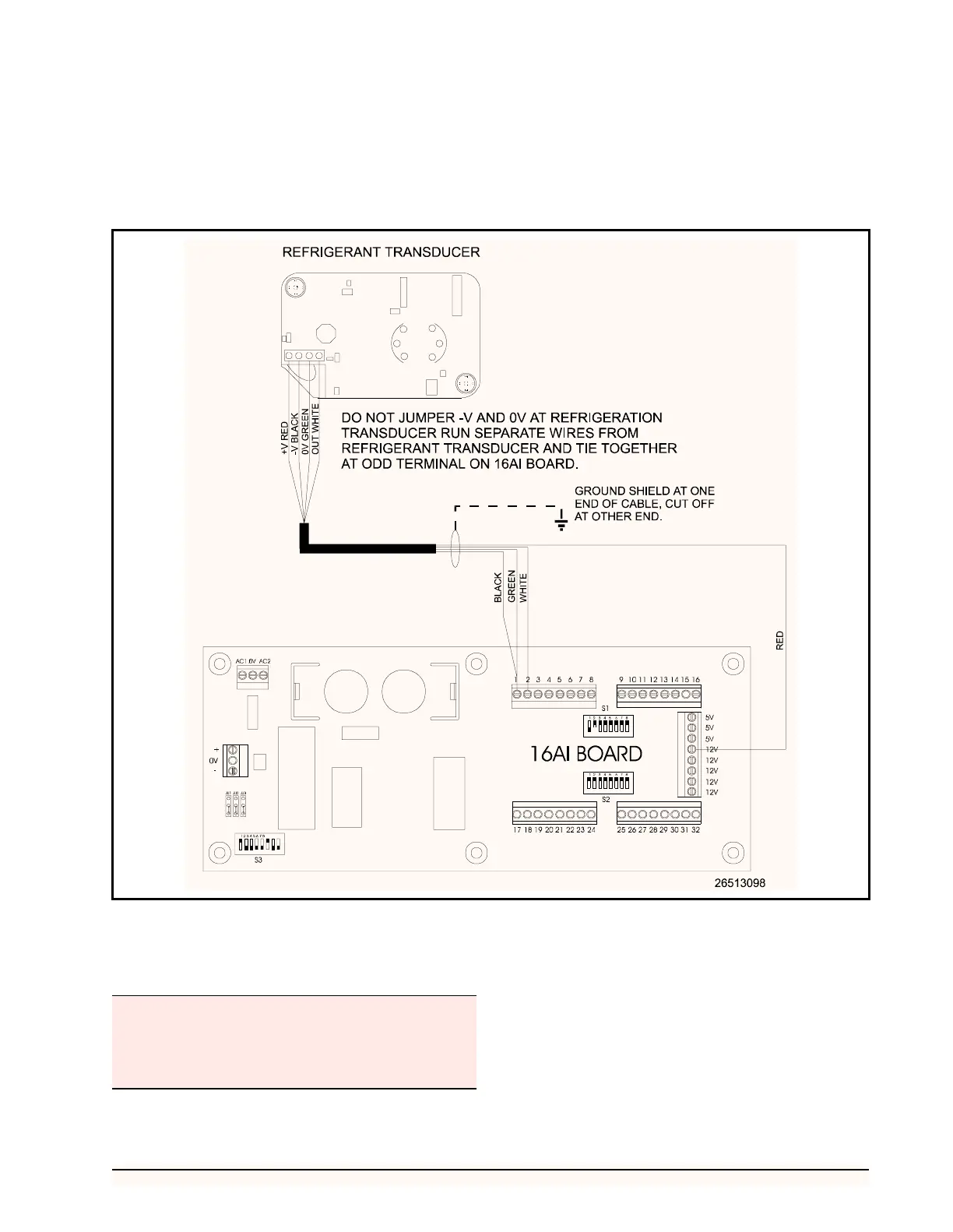 Do NOT jumper the -V and 0V terminals of the refrig-