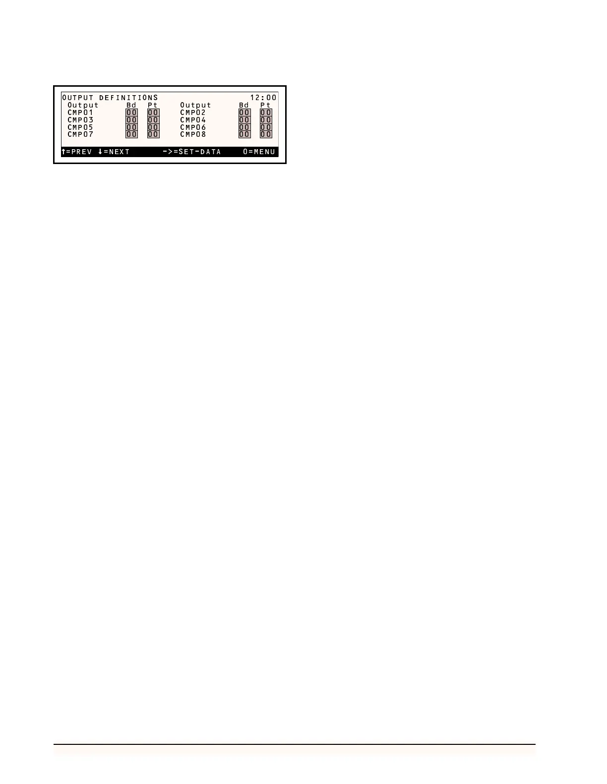 CTL 48). Press the DOWN arrow key from the Output Def-