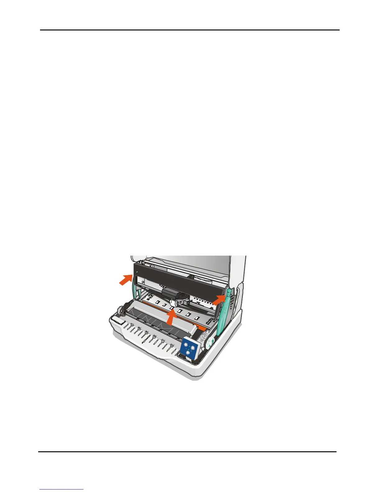 5) Remove the print head safety cover (item 23 of figure 2.5) by manually acting on its left and right hooks.