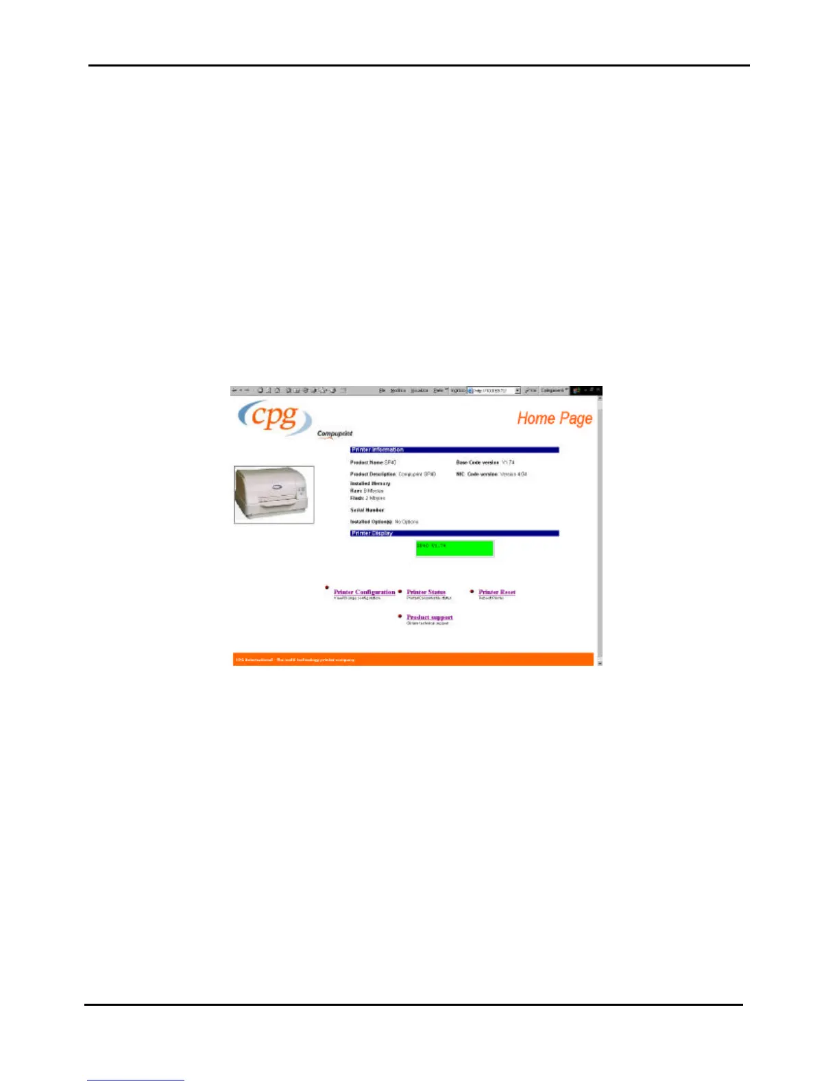 Figure 3.11a - Home Page of SP40 using a web browser