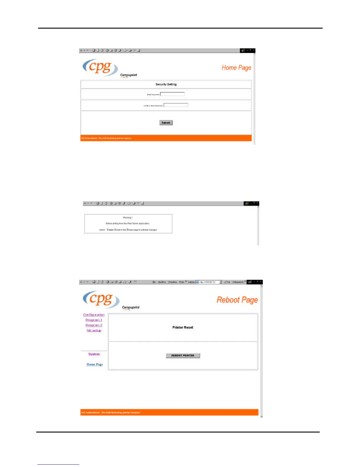 Click on the submit button, the following scree appears remind you that it is necessary to select Reboot printer