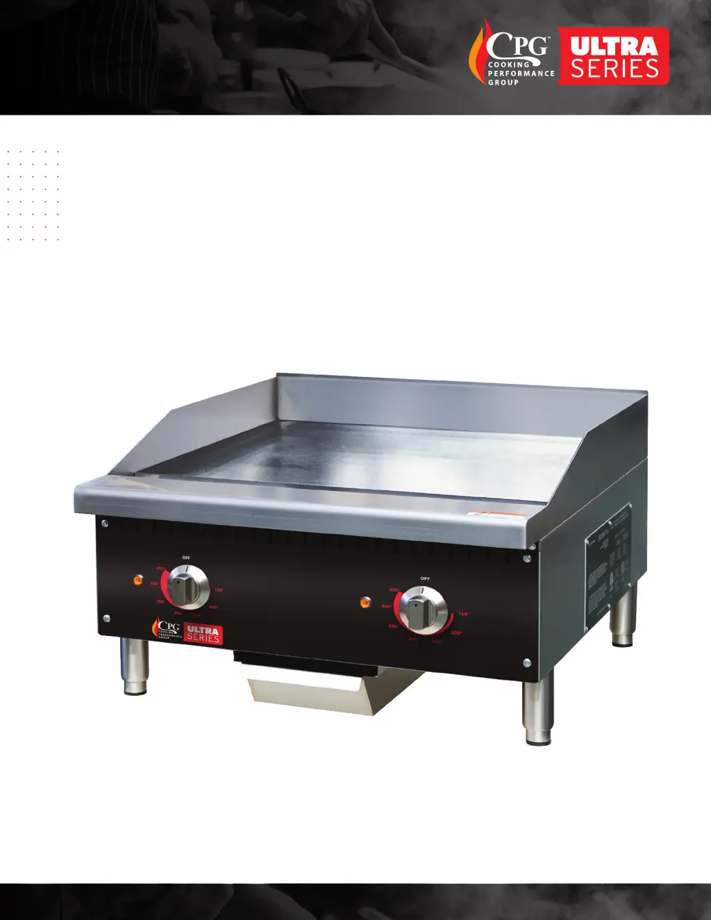 If the indicator light on your CPG Griddle isn't turning on, there may be no power, the thermostat may be off, or the thermostat may have failed. Check the power and make sure the thermostat is set to the desired temperature.