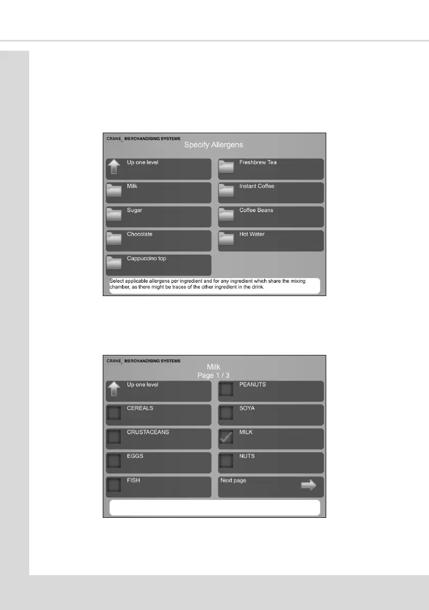 6. With all ingredient and allergens set select Up one level to return to the Allergens