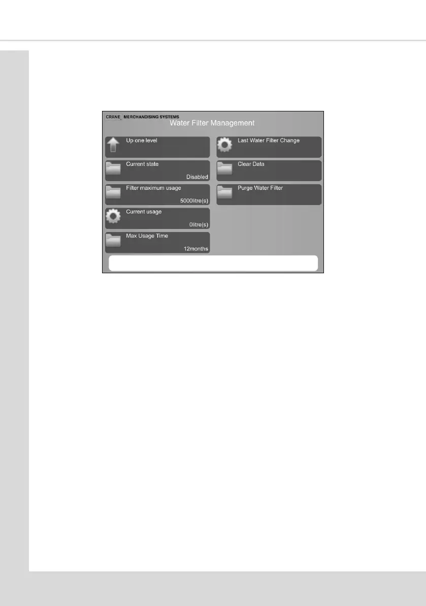 7. Purge Water Filter - this will purge the lter for 30 seconds. Ensure you have a suitable