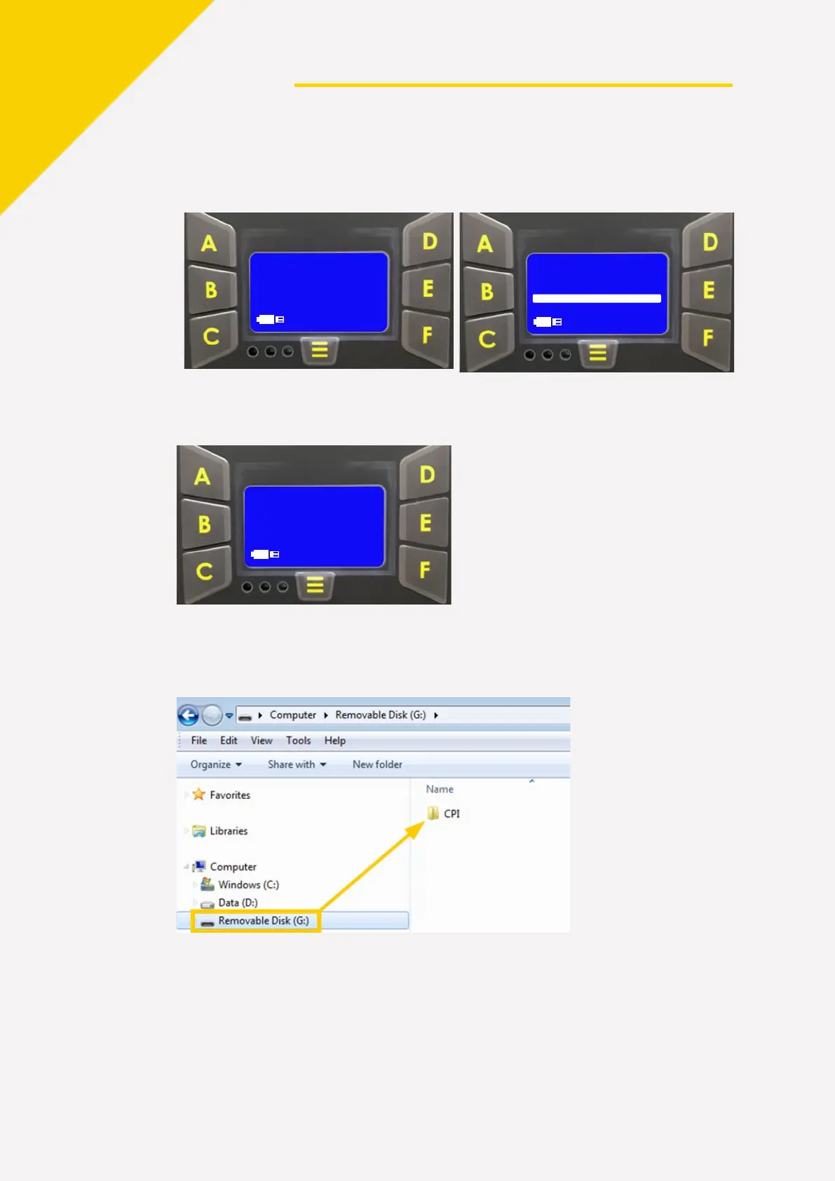 1. Branchez la clé USB sur un PC. Accédez au dossier CPI stocké sur la clé.