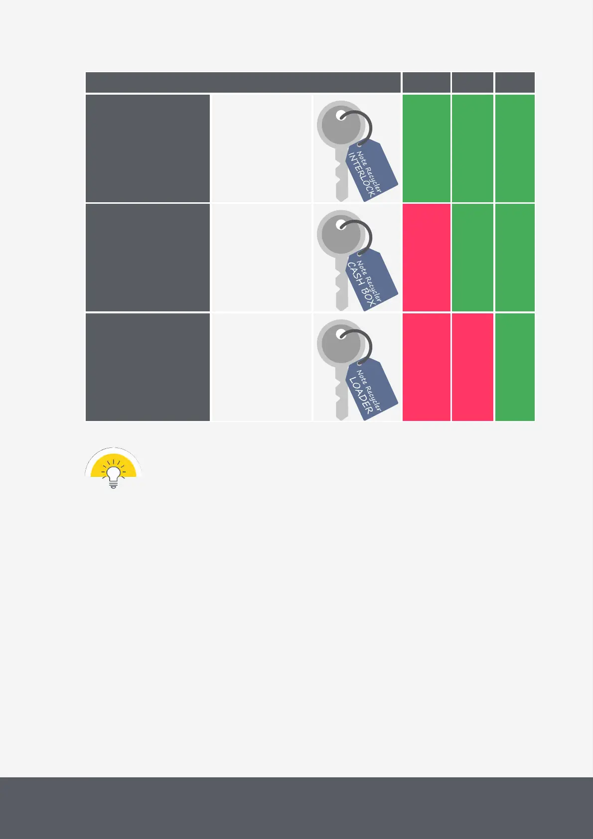 · Hand over the keys for the interlock system and cash units only to personnel allowed to have dir-