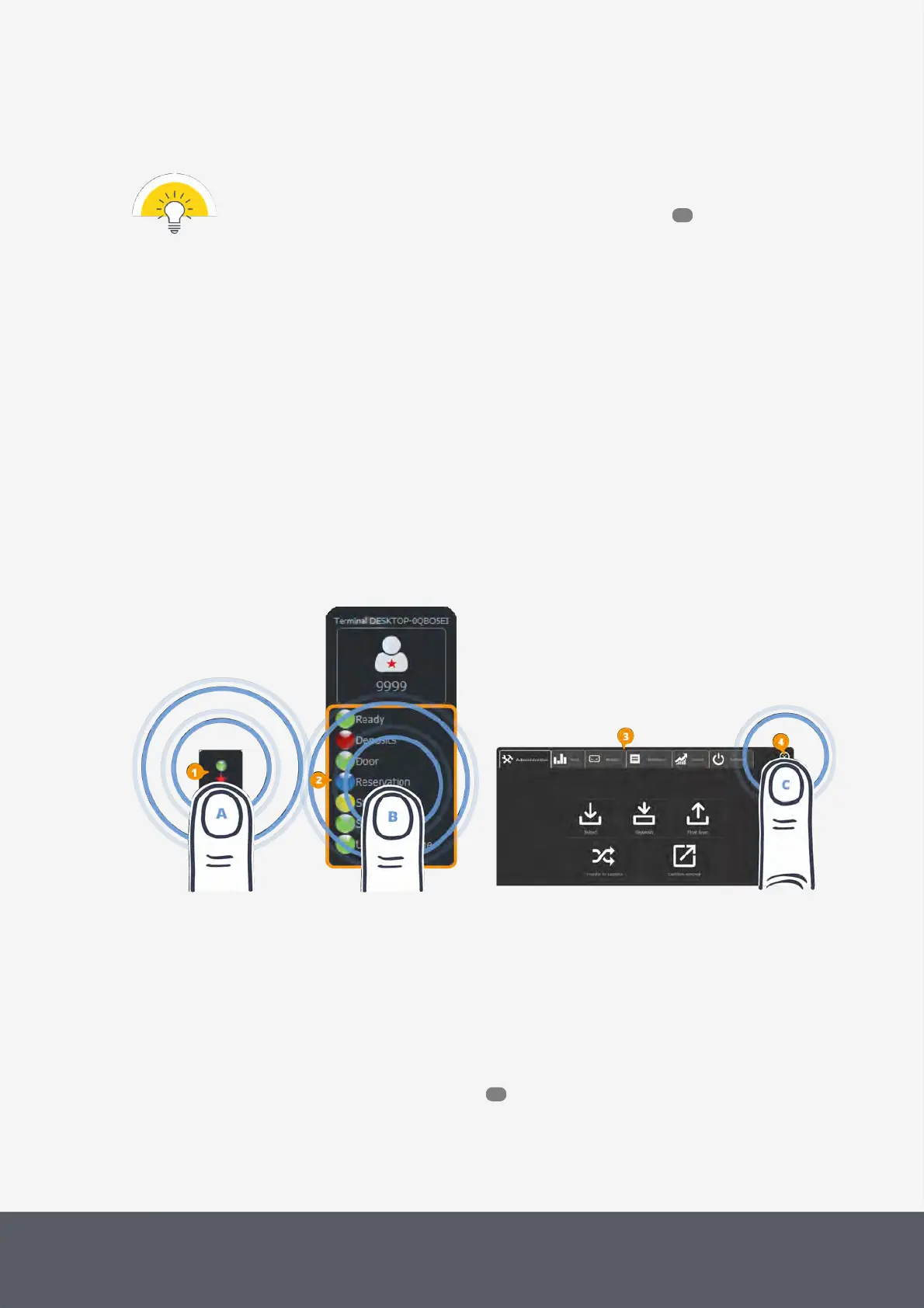 2 Double-tap the status field[2] of the Terminal interface (hidden button)[B].