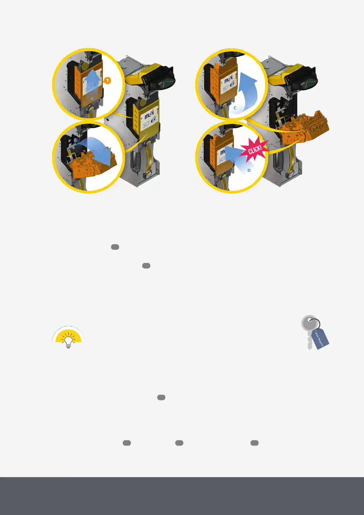 8 Then push the unit till it clicks into place[D]. If necessary, grasp both sides of the yellow cover and push it down