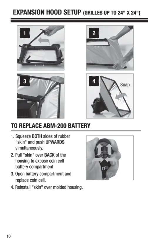 CPS ABM-HOOD - EXPANSION HOOD SETUP; REPLACE ABM-200 BATTERY
