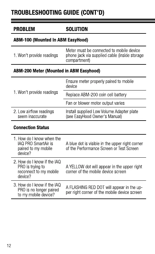 CPS ABM-HOOD - ABM-100 METER ISSUES; ABM-200 METER ISSUES; CONNECTION STATUS INDICATORS