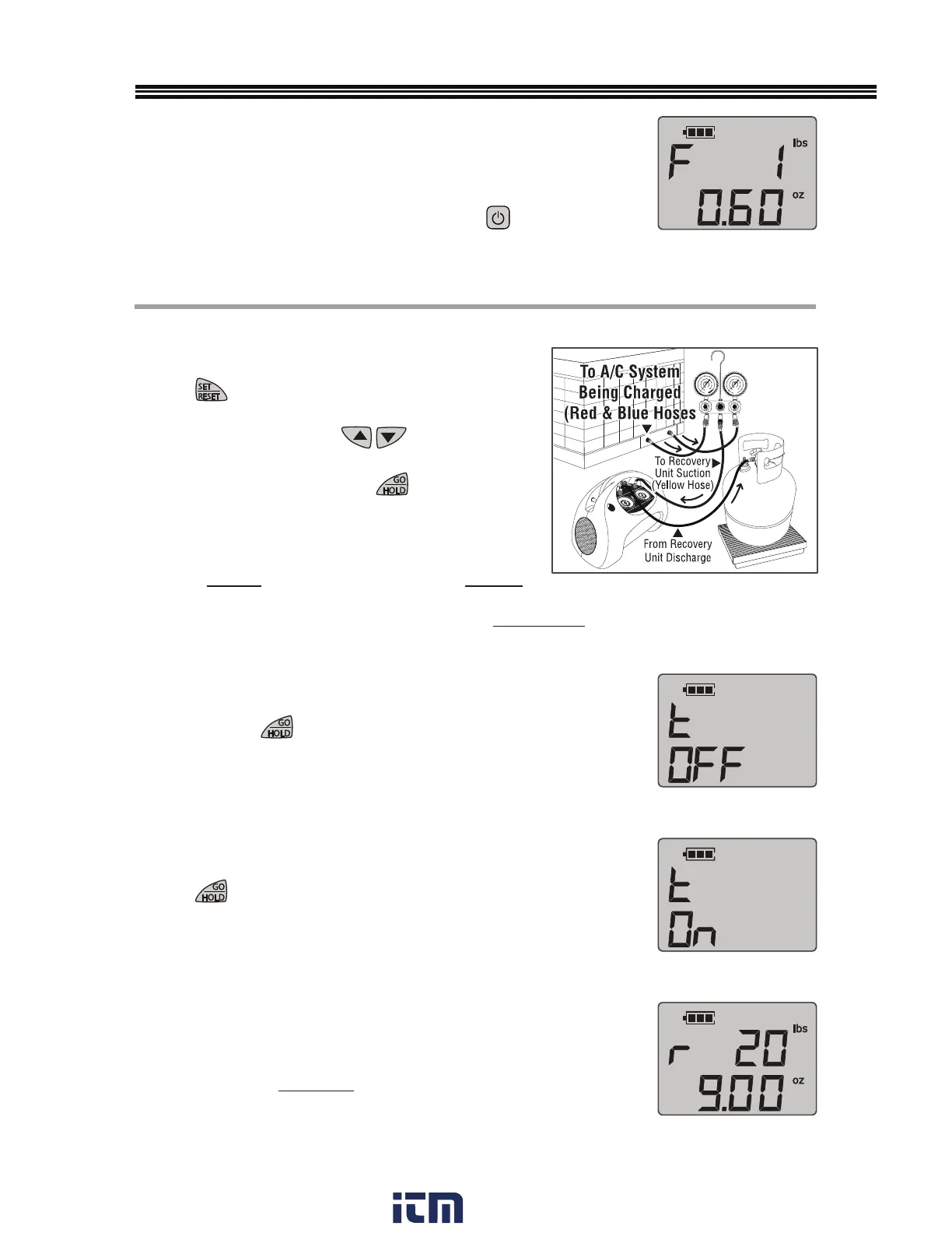 When “t ON” (Figure R-7) appears, place tank on scale,