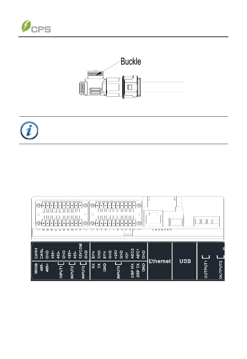 3. If you need to unplug the connector, press down and hold the buckle of DC