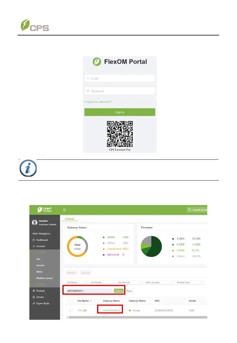 2. After connecting FlexOM gateway, open the following website to enter FlexOM