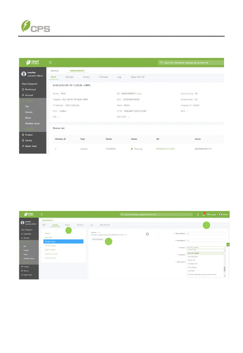 ① Click Setting menu and then choose Modbus Device from its pull-down list.