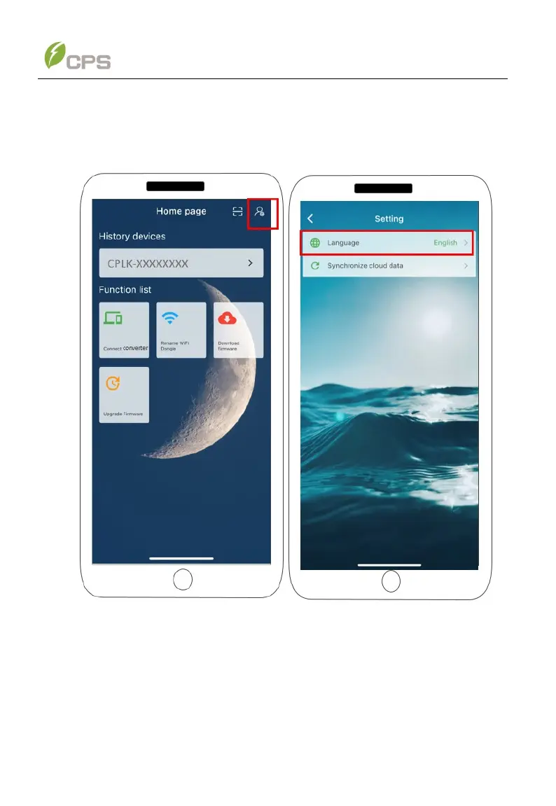 1. Open the Chint_power APP and then touch Setting icon on the top right