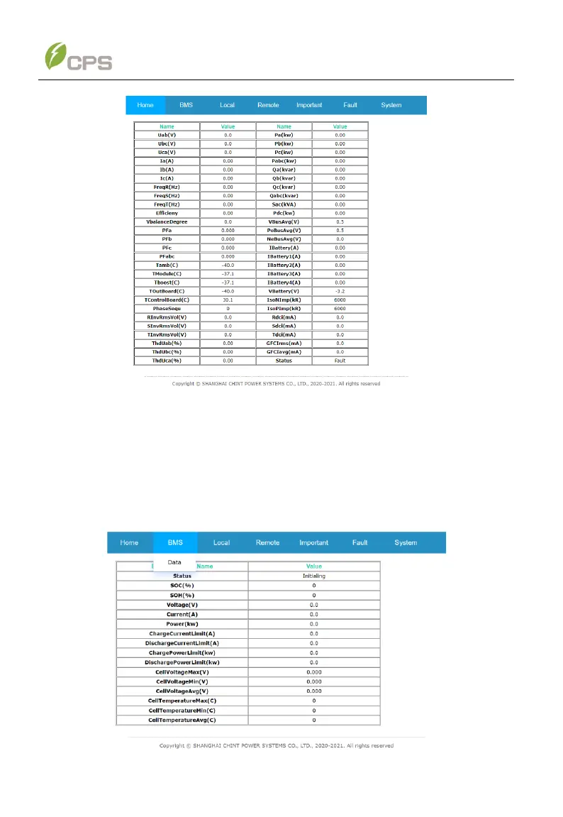 Status, SOC (%), ChargeCurrentLimit (A), DischargeCurrentLimit (A) etc. as shown