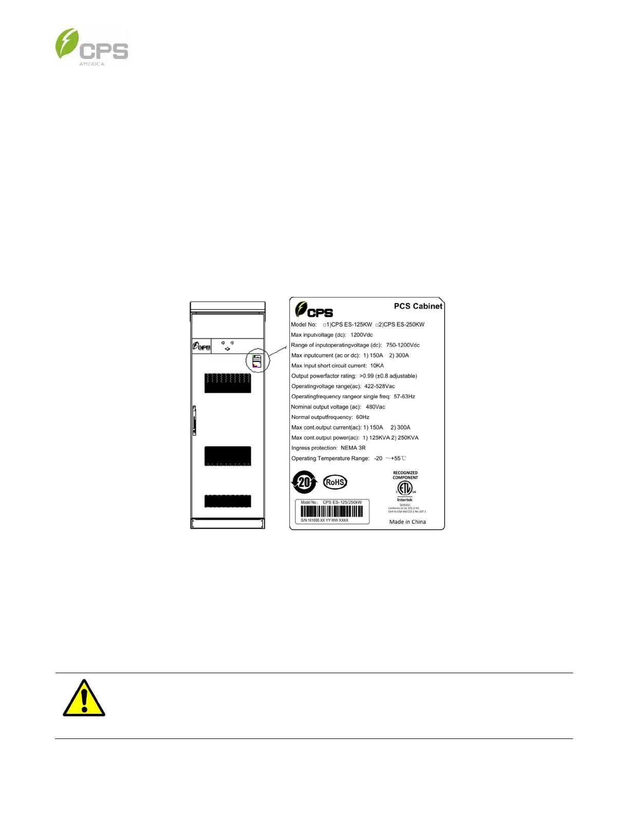 Users can find the PCS product details on the nameplate located on the front door of the PCS cabinet:
