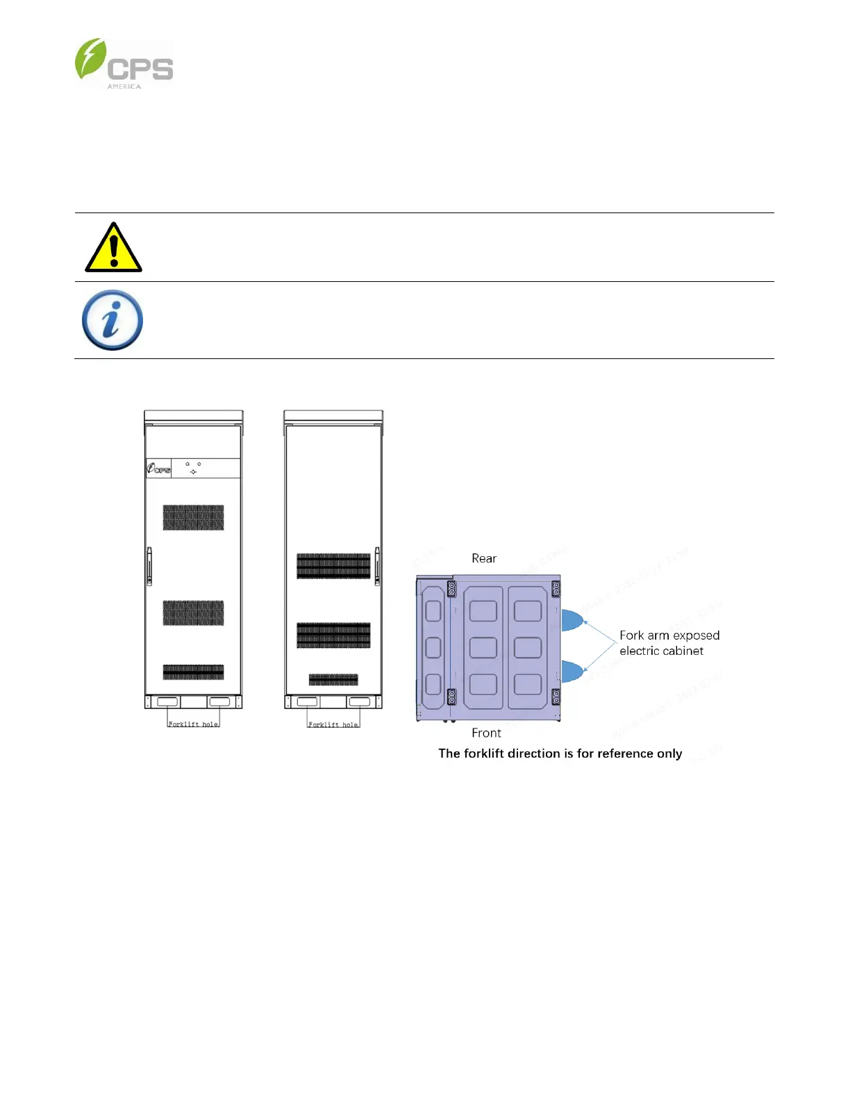 Figure 3-5 Forklift Pocket Locations (PCS Cabinet) Figure 3-6 Forklift Arm Location (Battery Cabinet)