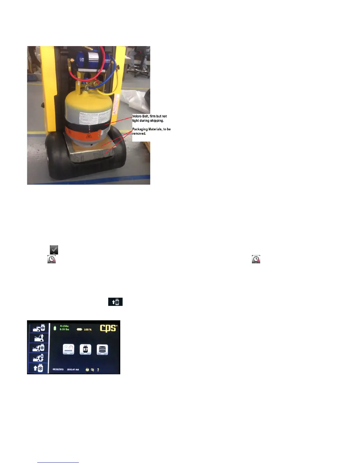 7. The main menu will appear. Hit the icon and refer to the Operators Manual for further instructions on how to fill the tank.