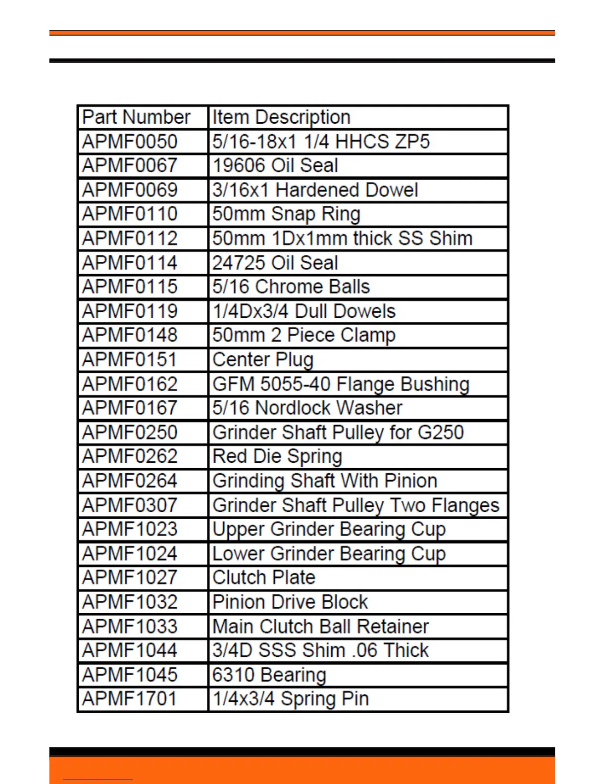 CPS g-290 - Slip Clutch Parts List (With Pinion)