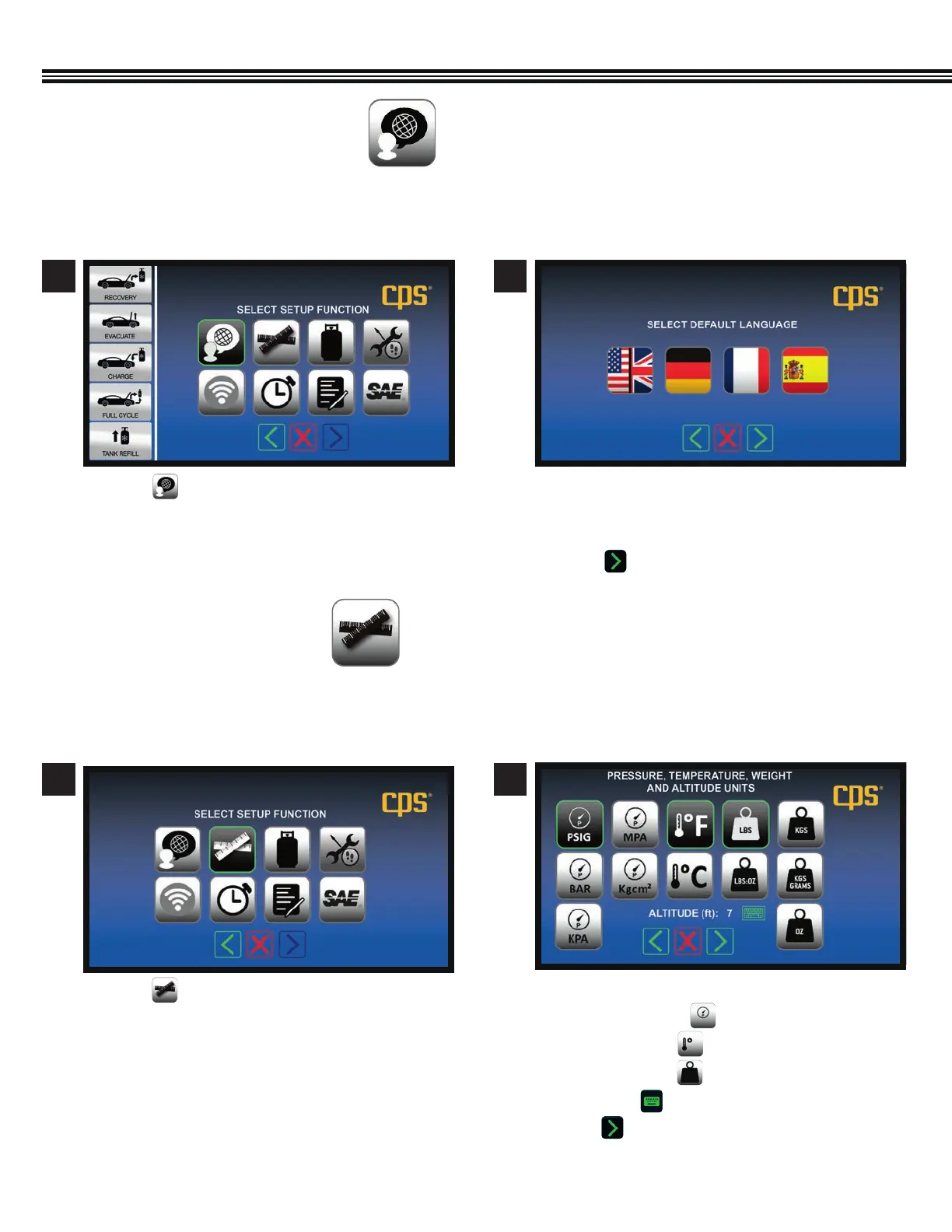 Select Pressure, Temperature, Weight, AltitudeSetup Function Screen