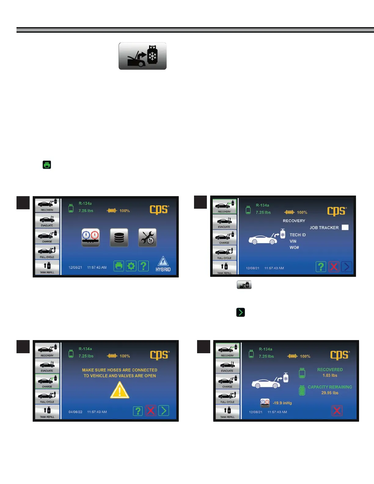 Refrigerant recovery automatically ends when the machine detects that the vehicle’s system is void of refrigerant.