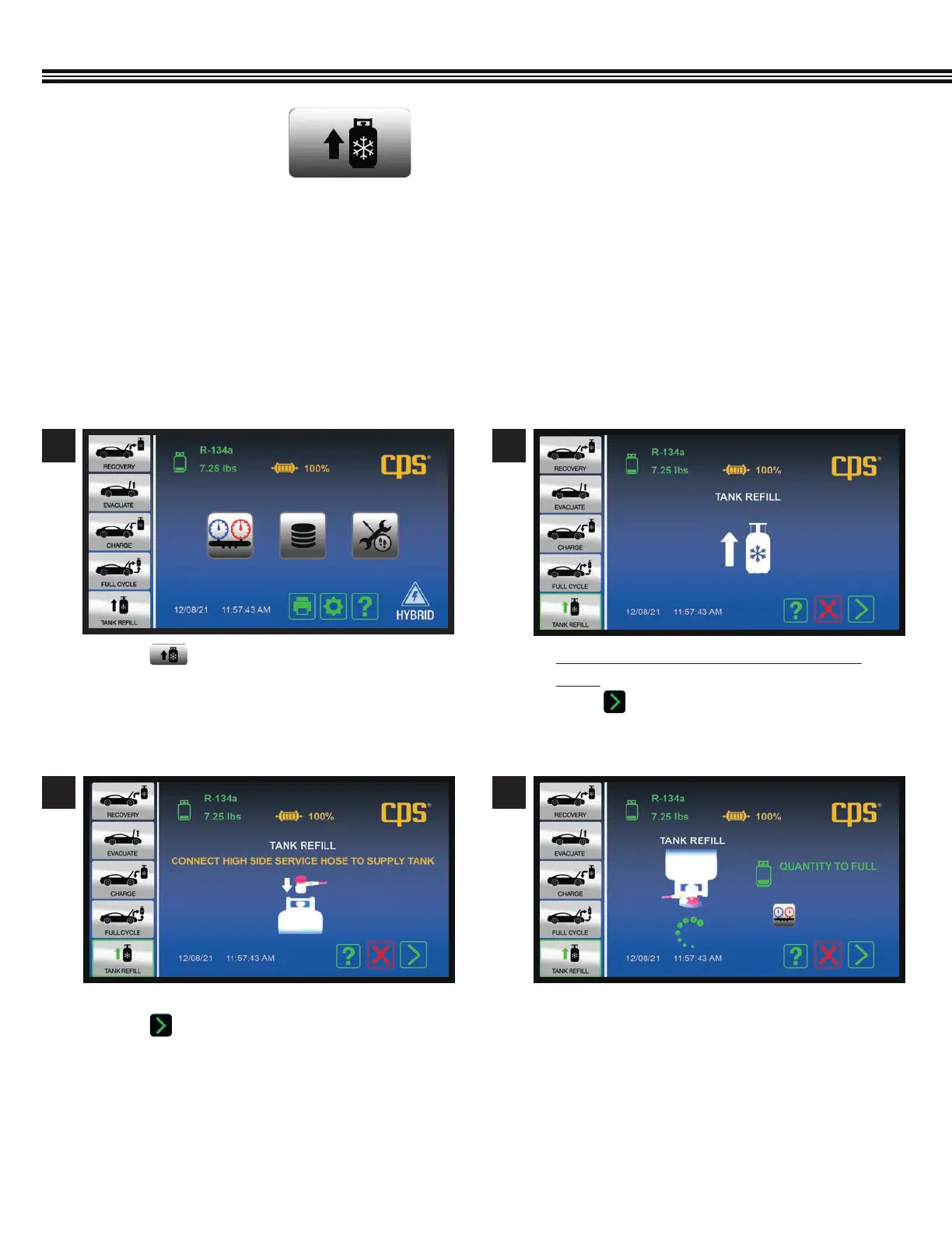 a. Touch to add refrigerant to the MX134 Tank.