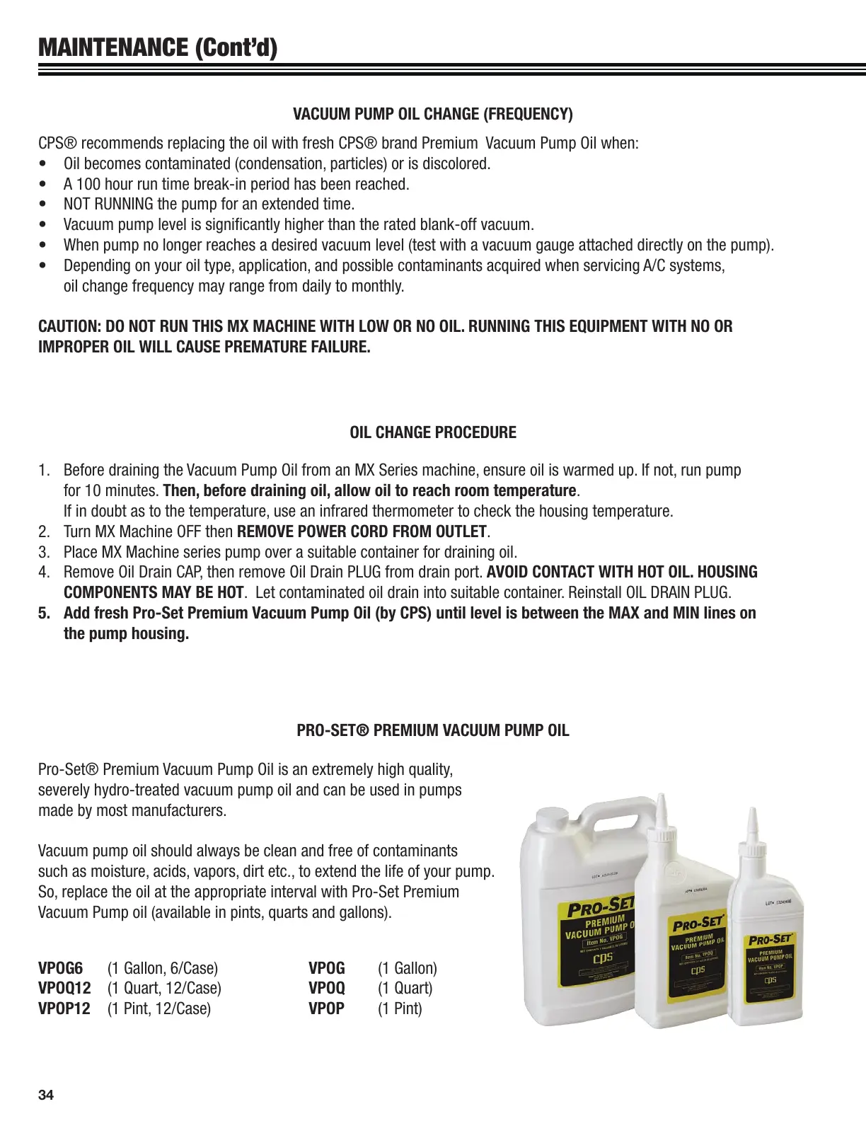 CAUTION: DO NOT RUN THIS MX MACHINE WITH LOW OR NO OIL. RUNNING THIS EQUIPMENT WITH NO OR