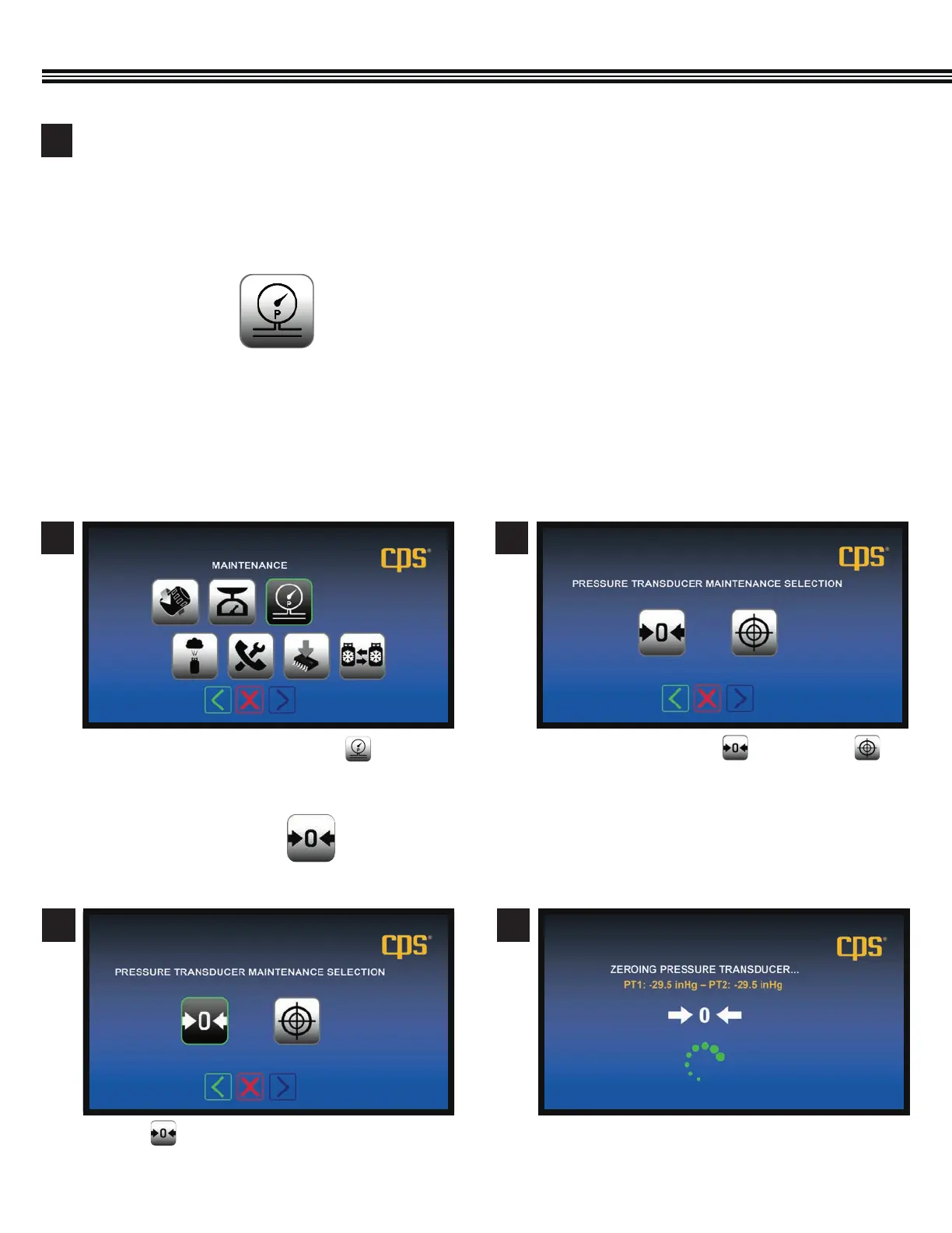a. Wait while PT1 zeros out.a. Touch to “Tare” (zero out) the Pressure