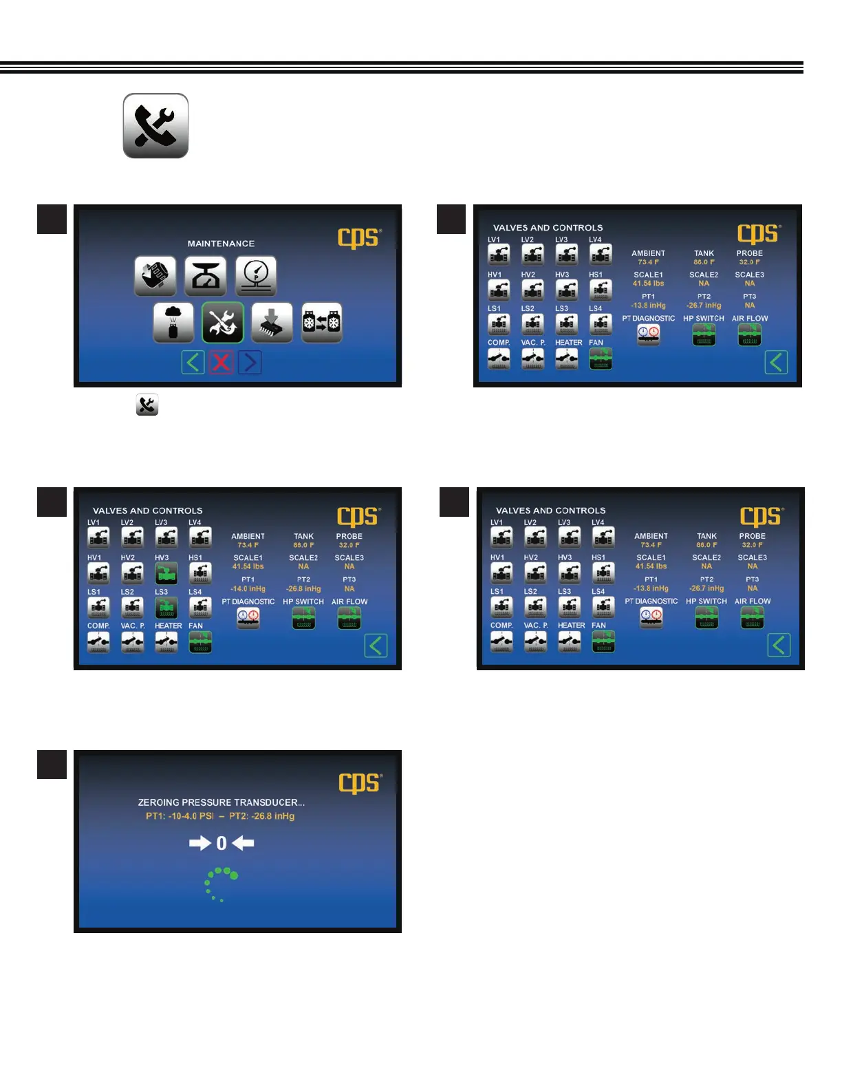 DIAGNOSTICS OF INDIVIDUAL VALVES, CONTROLS, SCALE, TANK, ETC.