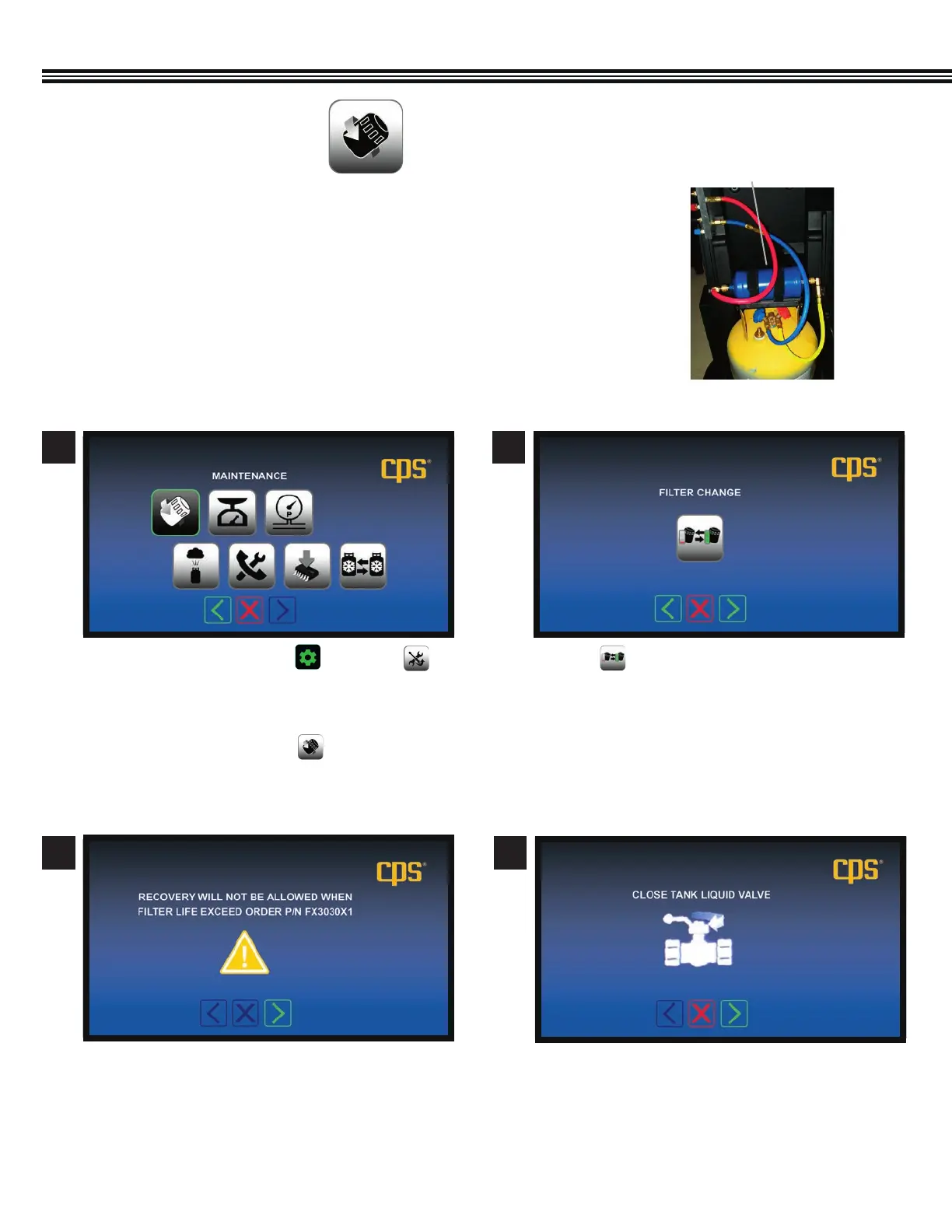 a. Close Liquid Valve on Recovery Tank Ball Valve.a. Refrigerant Recovery cannot be performed if Filter