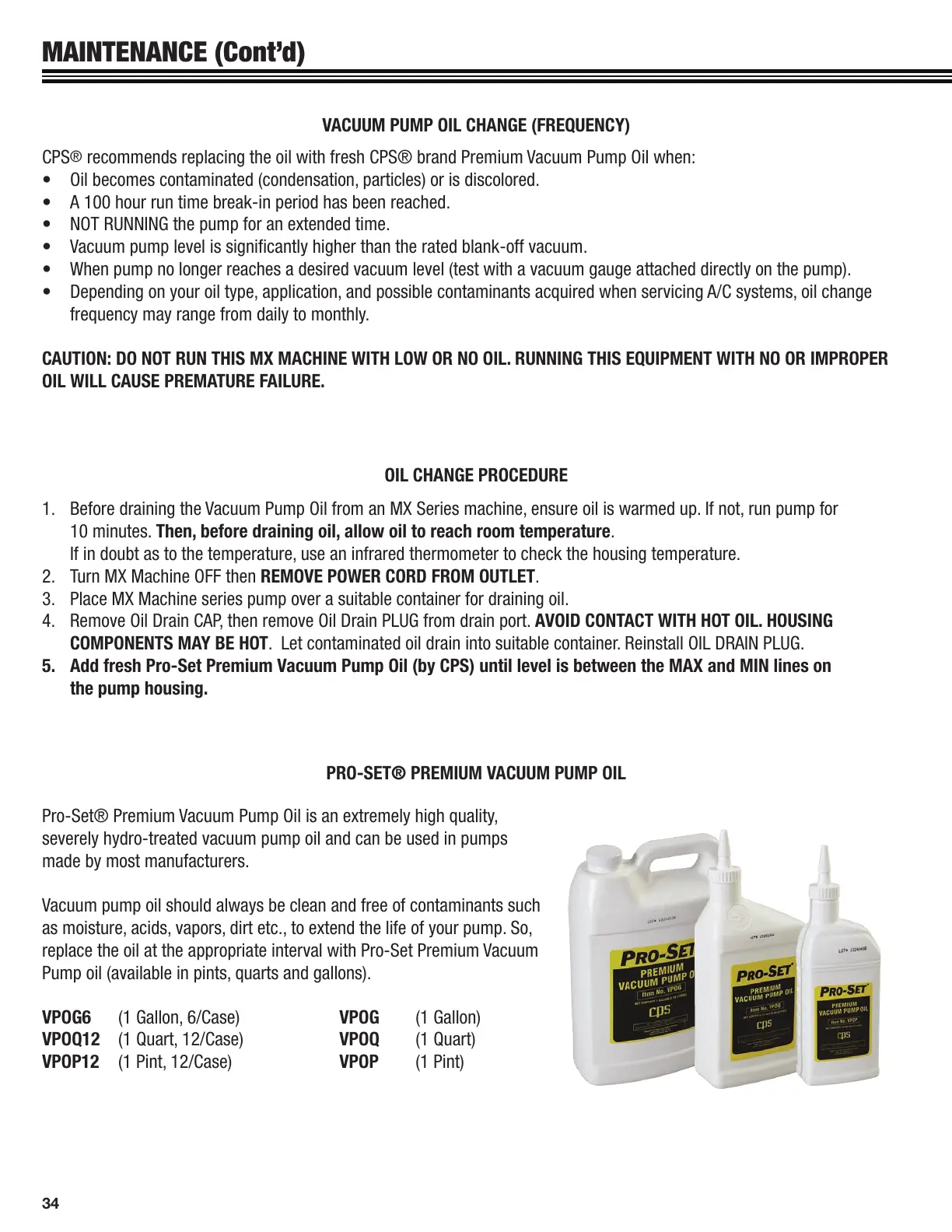 replace the oil at the appropriate interval with Pro-Set Premium Vacuum