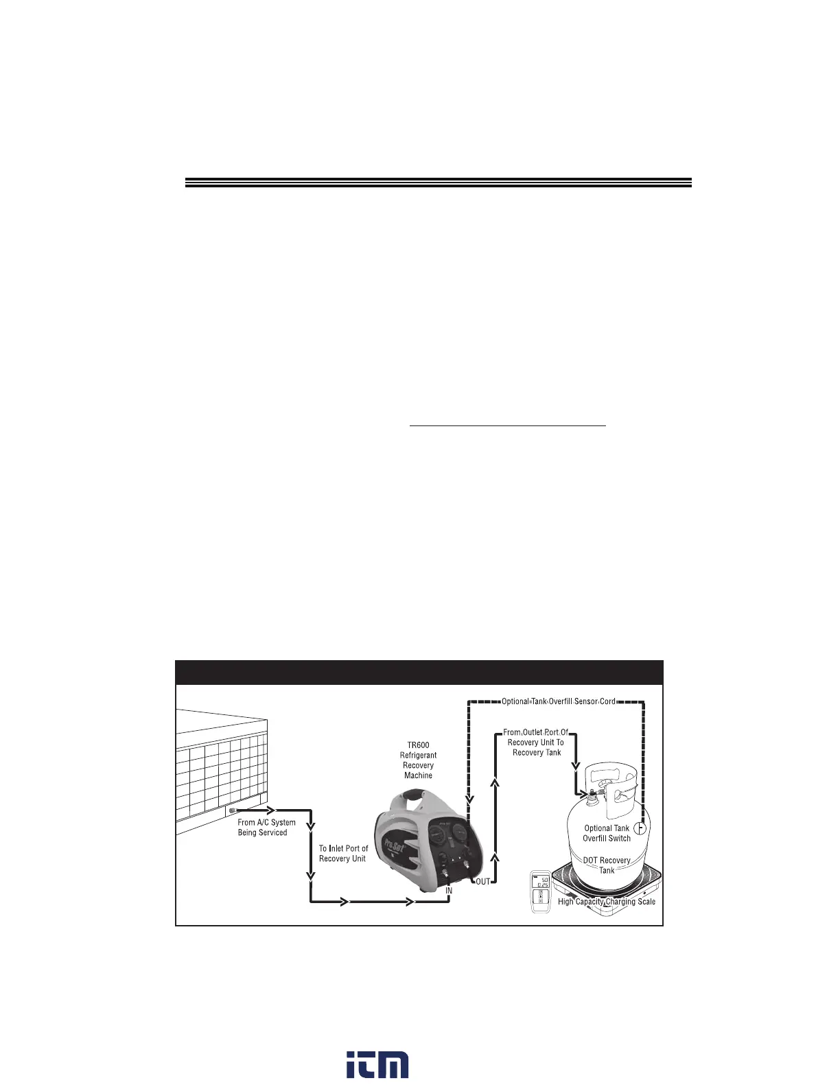 6. Monitor amount of refrigerant in Recovery Tank. WARNING: Do not over fill Recovery Tank.