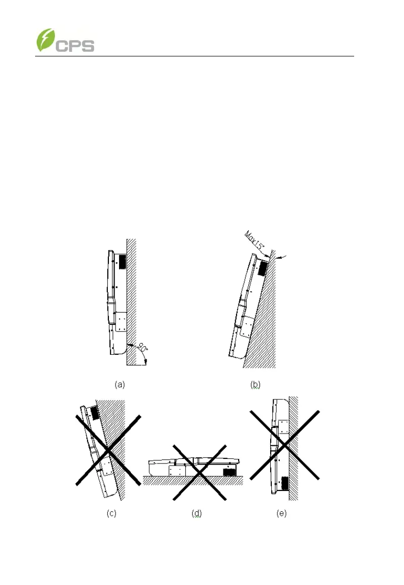 (b) If the inverter cannot be mounted vertically, it is allowed to be tilted