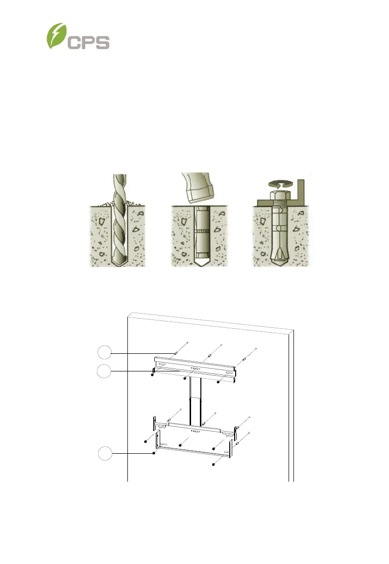 (b) Concrete Wall Mount: Drill holes at the marked positions with