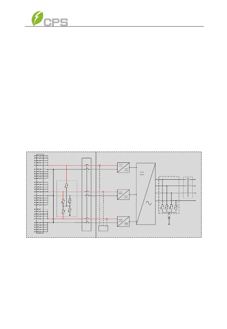 The basic electrical schematic diagram of the CPS SCA36/50/60KTL-