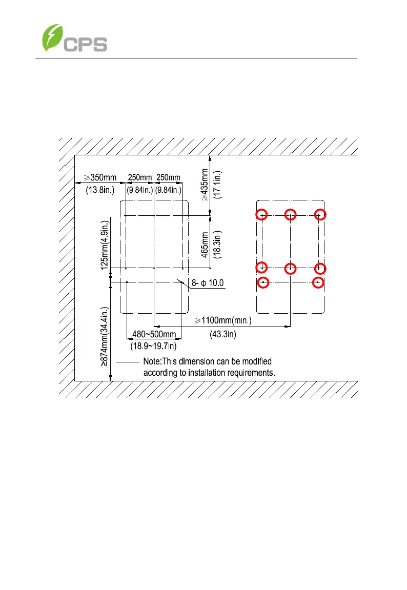 Step 1 Locate and mark the 8 holes on the wall, PV racking structure,