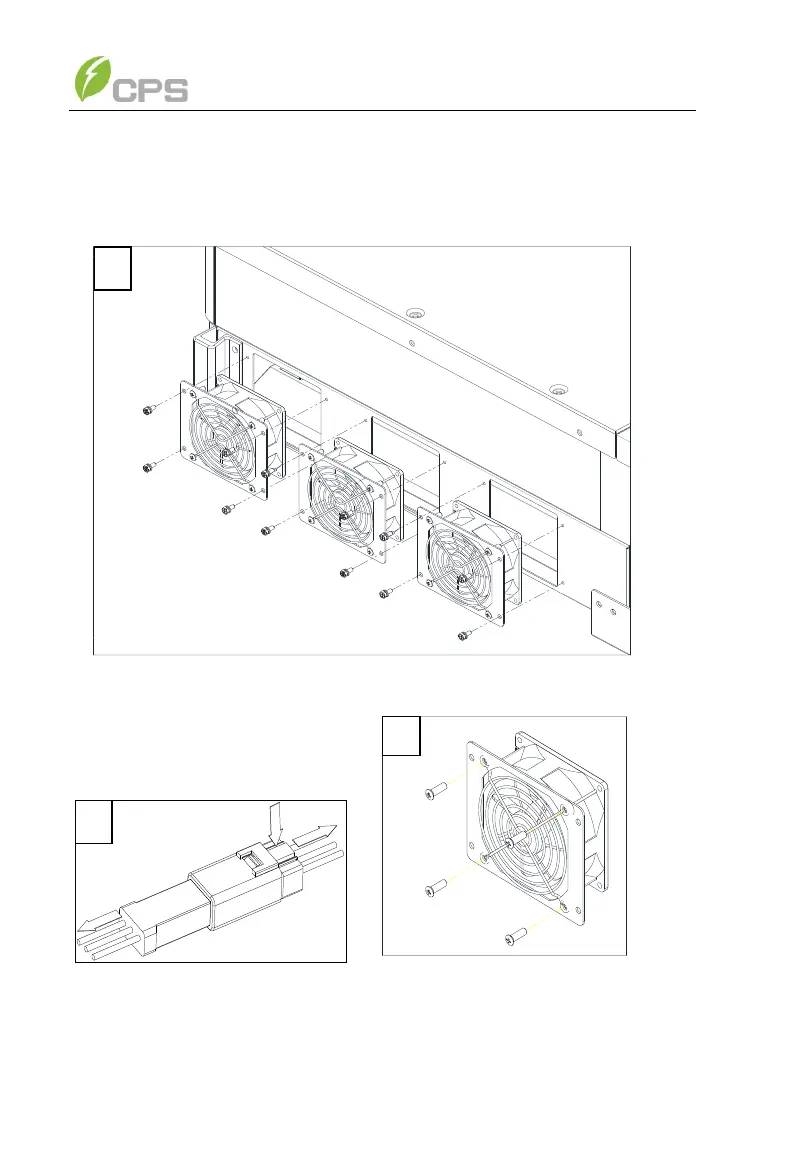 (4) Attached the new cooling fans on the fan tray and fasten the cable on