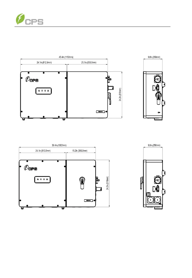 Figure 3-1 Dimensions of CPS SCH100/125KTL-DO/US-600 and
