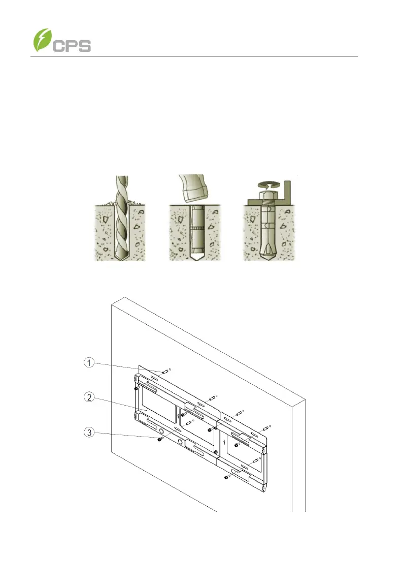 the M8 Expansion Anchors ① into the holes; fasten the Mounting