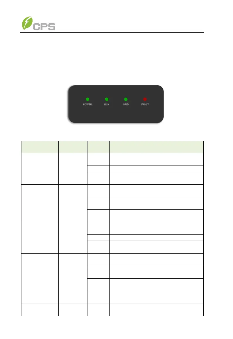 The inverters have four LED lights on the front of the units. Table 6-1