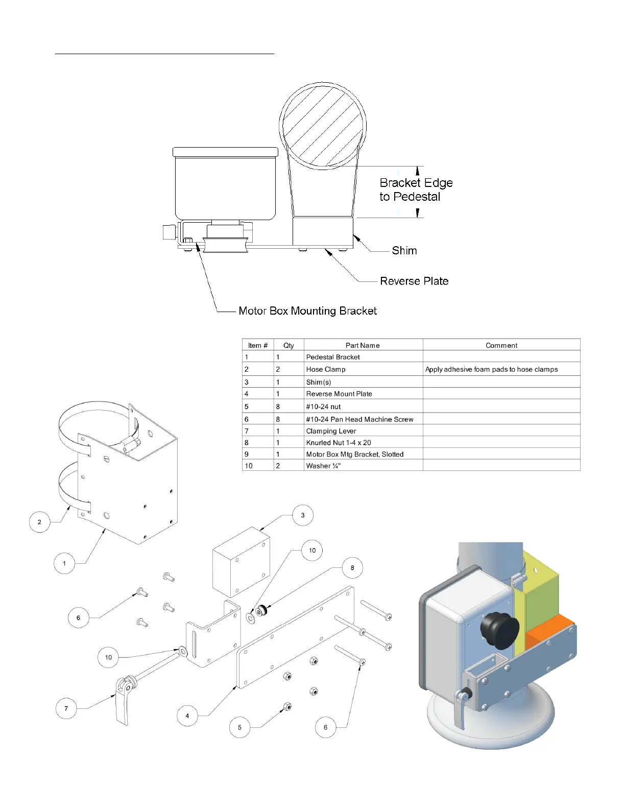 Reverse-Vertical Pedestal Mount Diagrams, Port Side