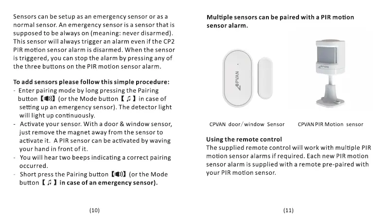 motion sensor alarms if required. Each new PIR motion