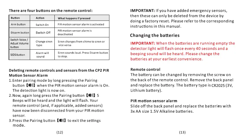 Deleting remote controls and sensors from the CP2 PIR