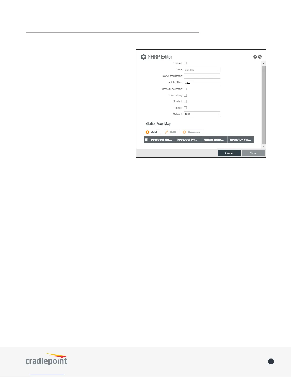 • Protocol Address: Mapped endpoint to from protocol address to NBMA address