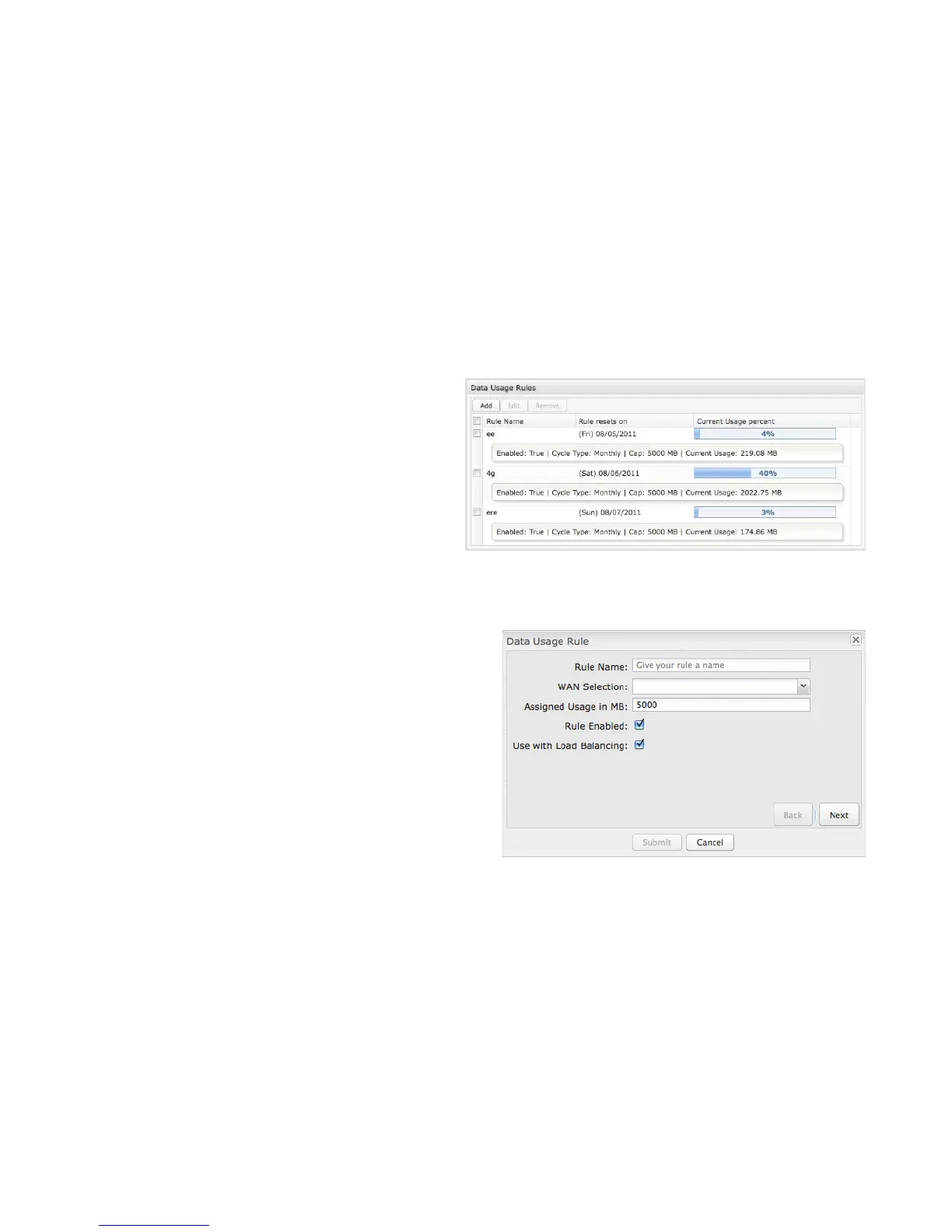 Click Add to configure a new Data Usage Rule.